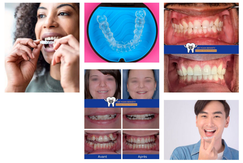 Aligneurs transparents amovibles qui ajustent les dents progressivement, très prisés pour leur discrétion et leur confort.