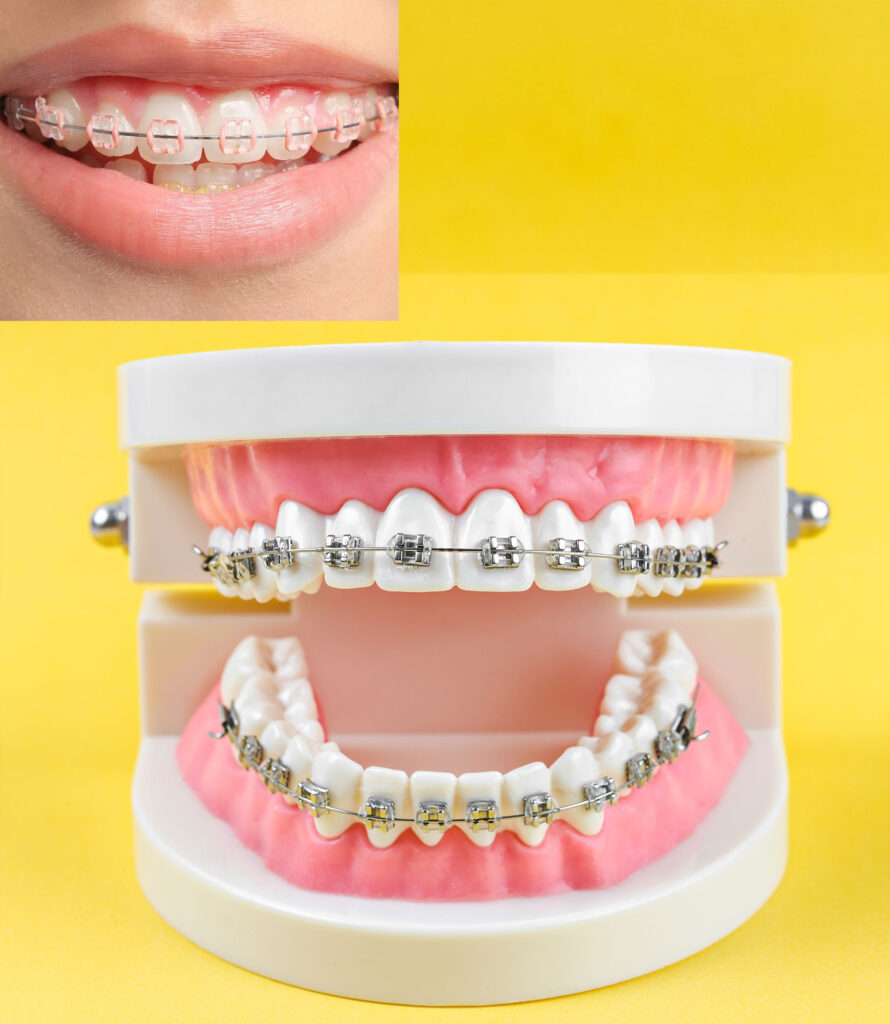 Les appareils peuvent être fixes ou amovibles. Les systèmes fixes, tels que les brackets métalliques, en céramique ou en polymère, sont adhérés à la surface des dents à l’aide d’un agent de liaison orthodontique. Ils sont connectés par un arc orthodontique, qui transmet les forces aux brackets via des ligatures élastomères ou des clips intégrés.